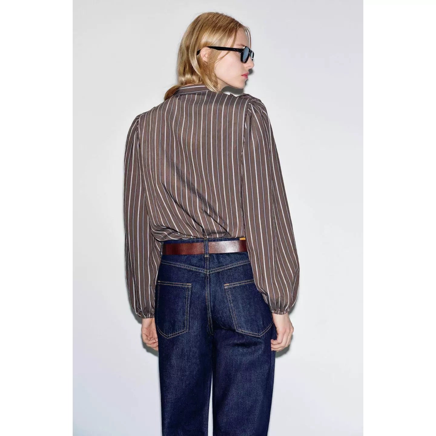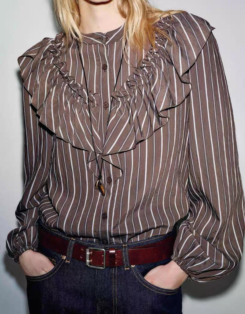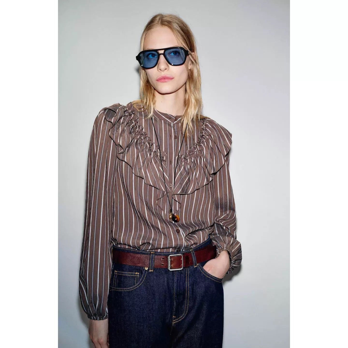 • Design details: Lightweight striped blouse with a relaxed fit and soft drape. Designed with a subtle ruffle neckline detail that adds femininity to the clean silhouette. A versatile piece for everyday styling and layering.