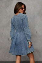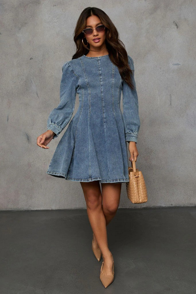 - Детали дизайна: a-line, crewneck, long sleeve, mini.