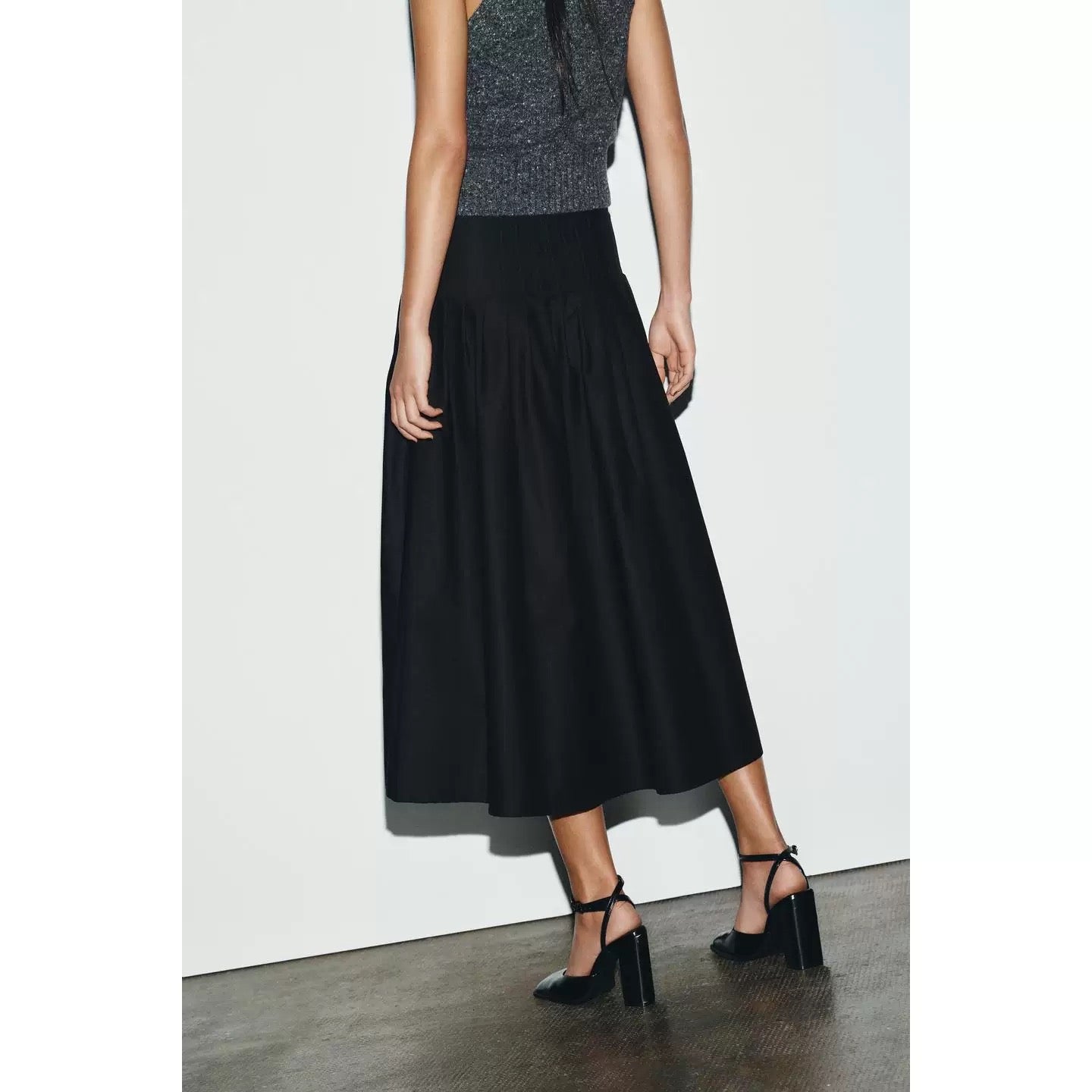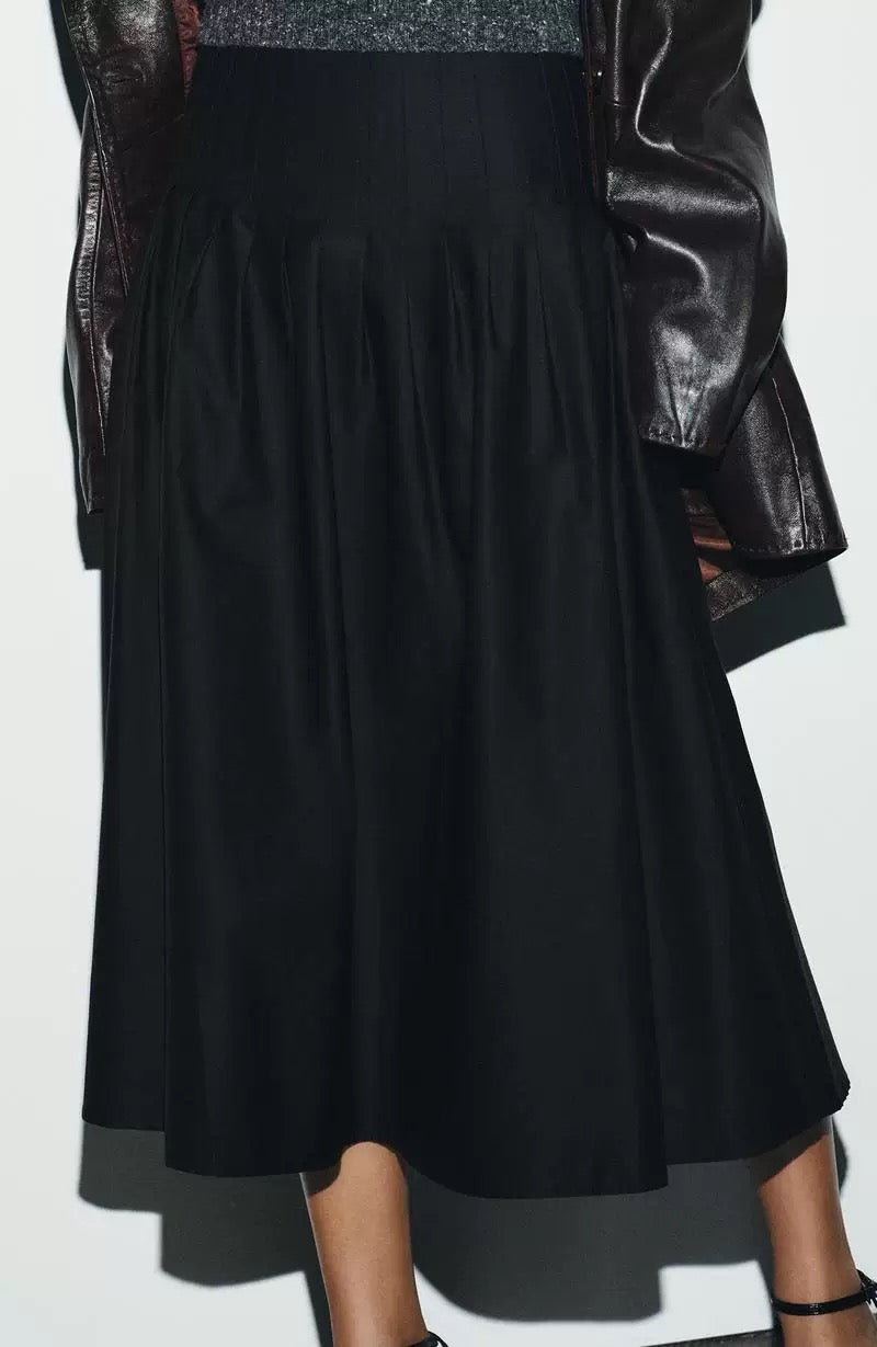 • Design details: High-waisted maxi skirt with a softly structured silhouette and gentle volume through the hem. Designed with clean lines and a smooth waistband that creates a flattering, elongated shape. A timeless everyday piece for effortless styling.