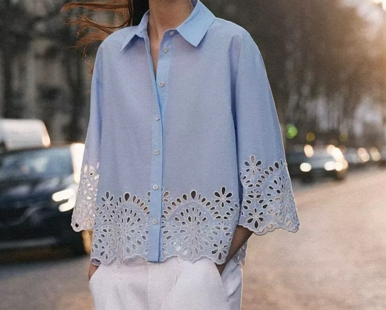 • Design details: Tailored blouse. With subtle texture that enhances its modern aesthetic. Defined by minimal lines and modern femininity.