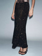 • Design details: Elegant long skirt featuring a subtle sequin texture that adds soft shine and depth. Designed with a sleek, elongated silhouette for a refined evening look. The fluid fit creates a flattering shape while maintaining comfort and movement.
