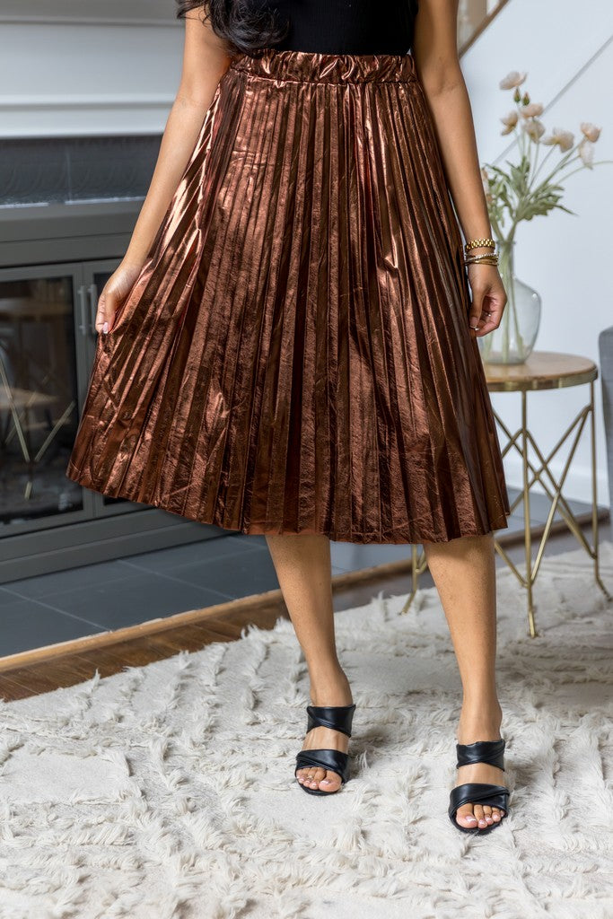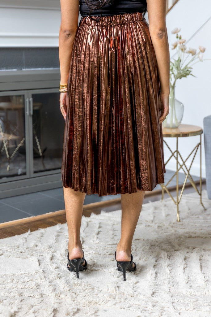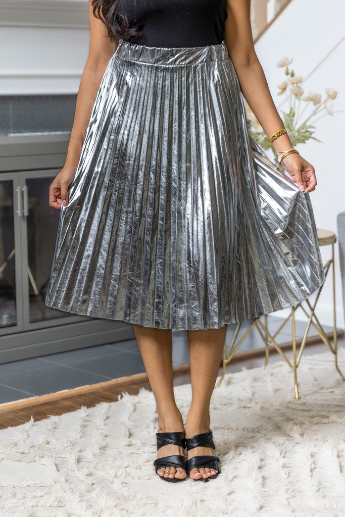Metallic Pleated Midi Skirt
