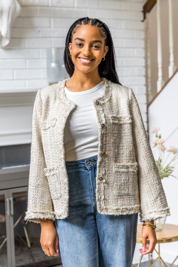 • Design details: Classic Style Tweed Blazer With Gold Buttons & Front Pockets .