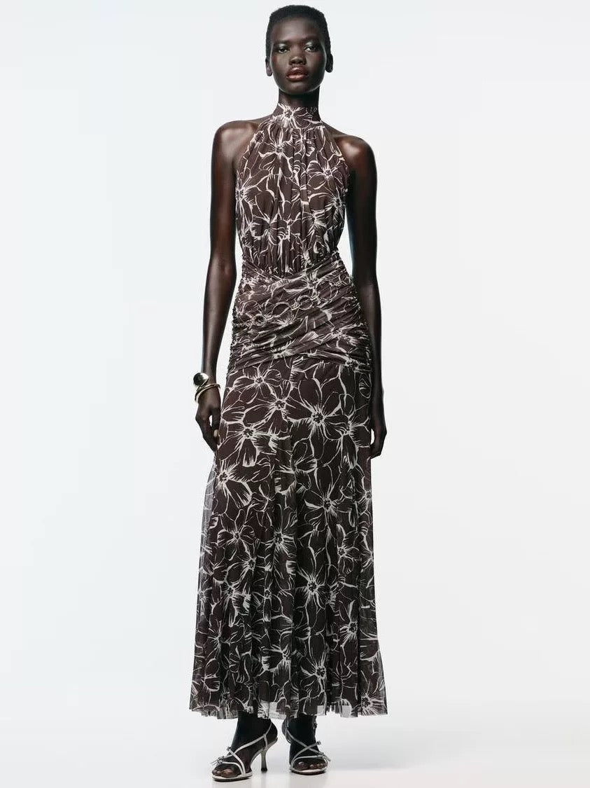 Aria Brown Printed Maxi Dress
