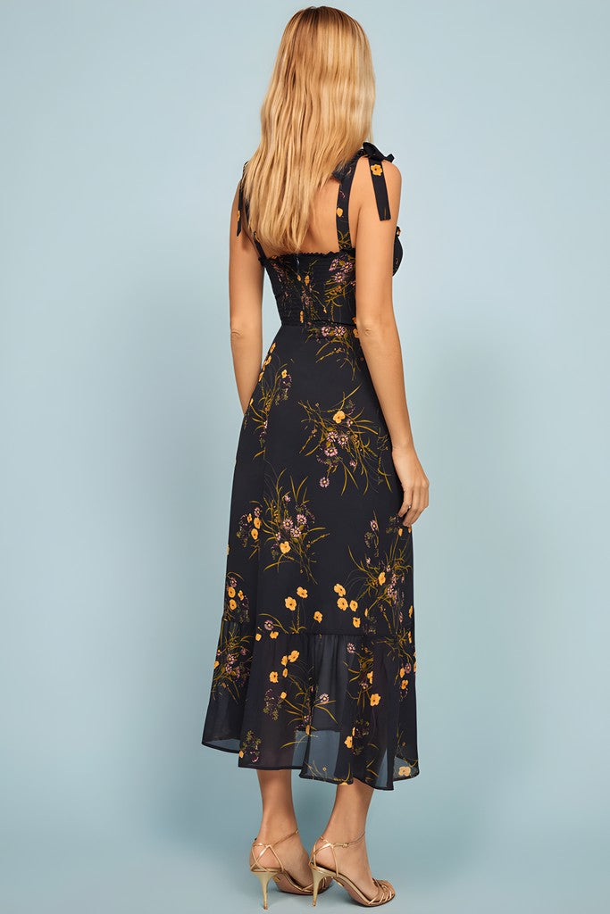 • Design details: This A-line maxi dress features adjustable straps and a charming floral print over dark blue fabric. The viscose fabric flows beautifully, while the cotton lining adds comfort for warm days.