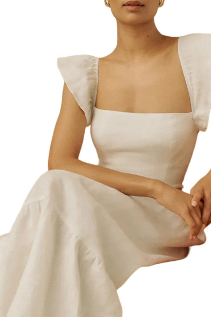 • Design details: a-line silhouette, maxi length, squareneck, backside zipper