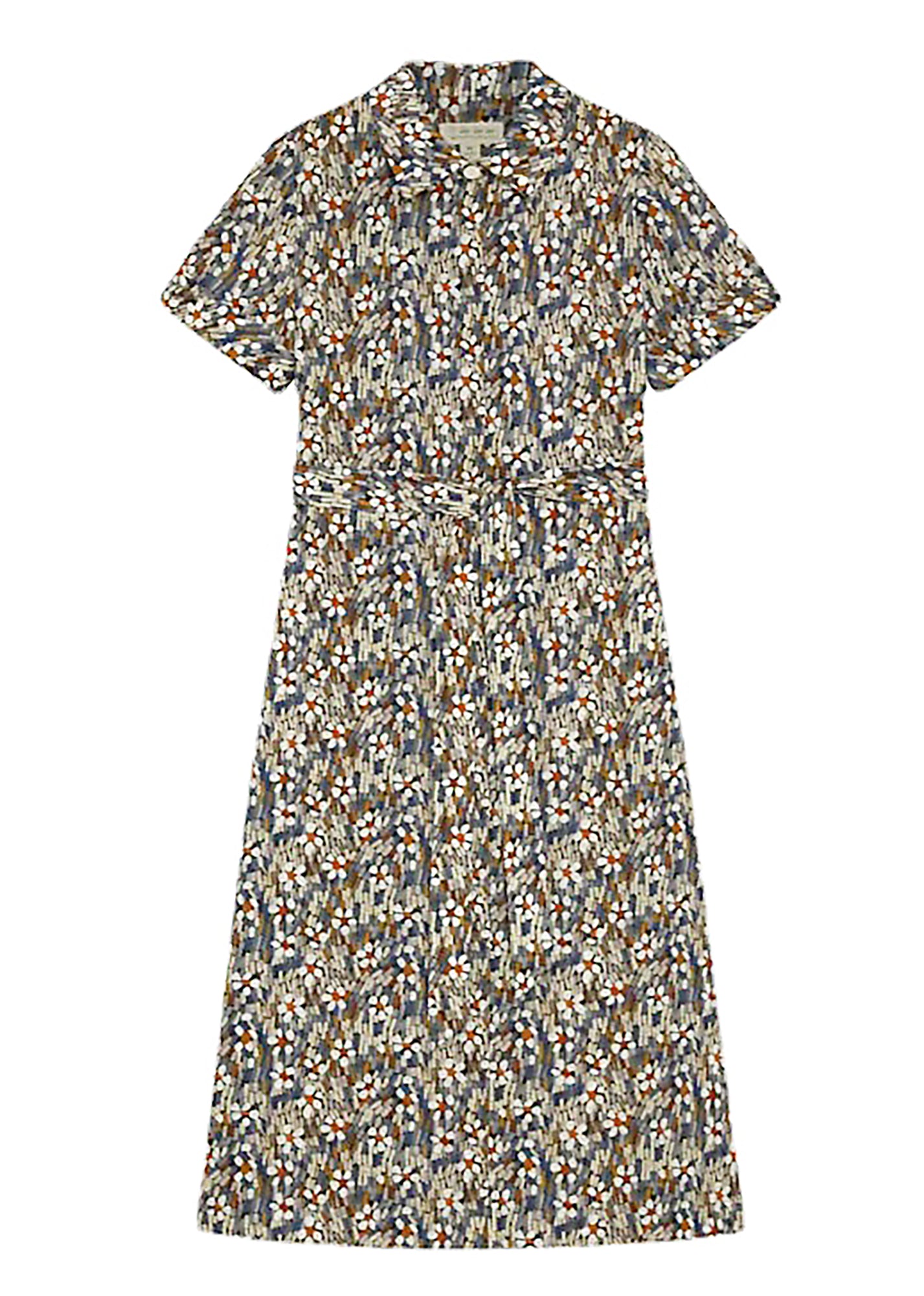 • Design details: a-line silhouette, below knee length, peter pan collar, short sleeve, printed, with belt
