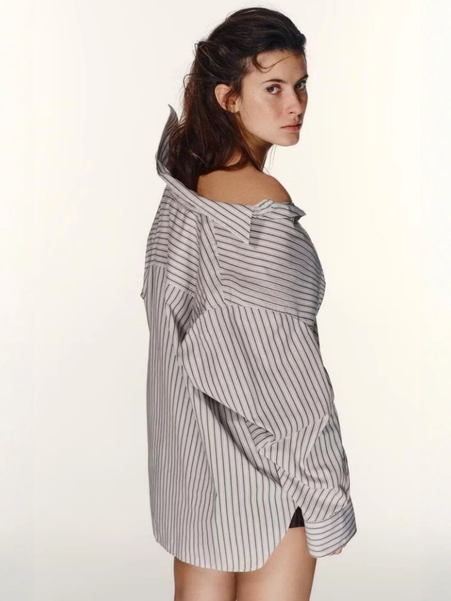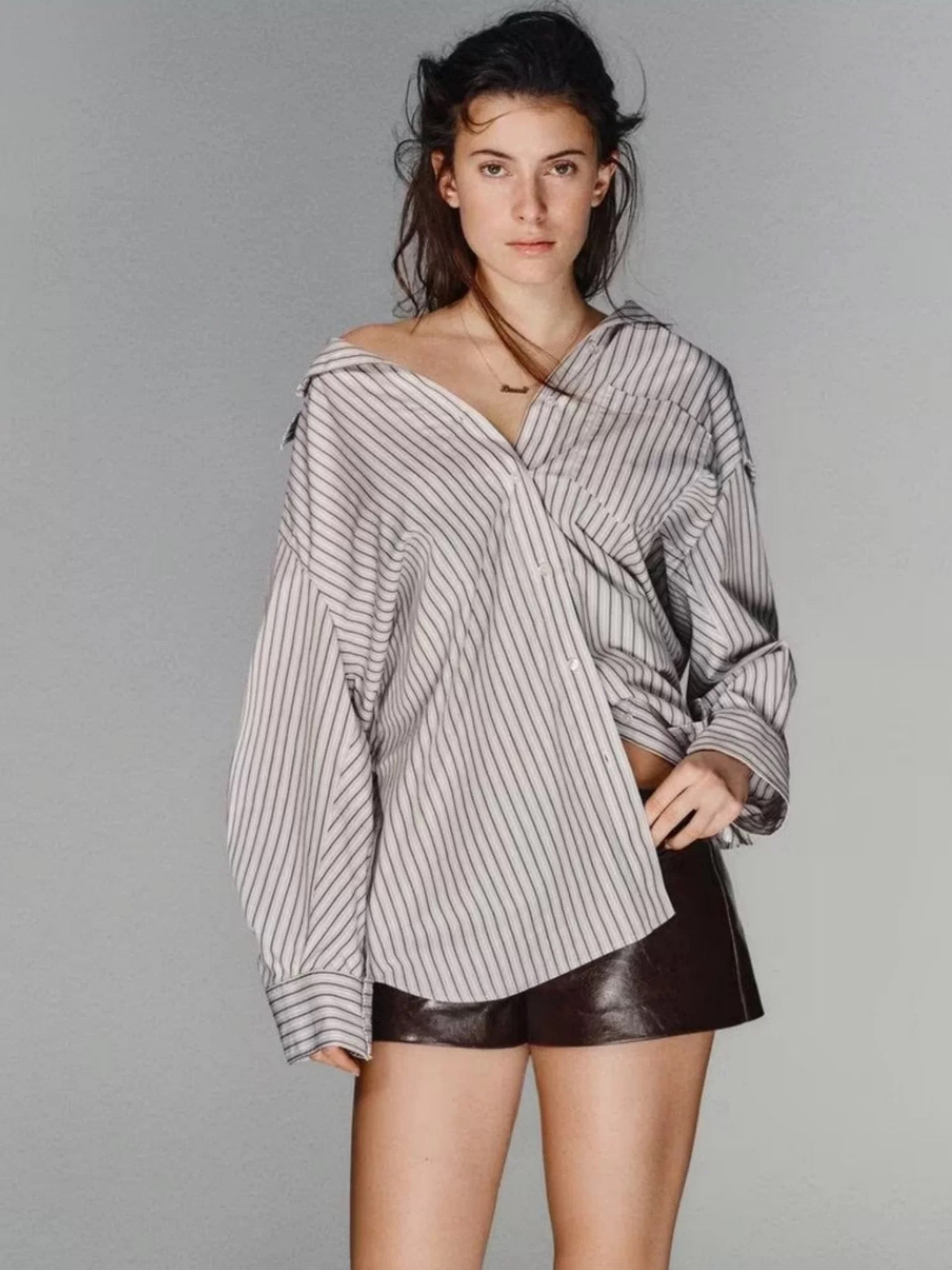 • Design details: Oversized button-up shirt with a relaxed, slightly structured silhouette. Designed with dropped shoulders and a loose fit for an effortless, modern look. Easy to style open over tops or worn as a statement shirt.