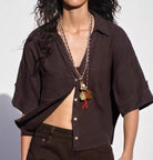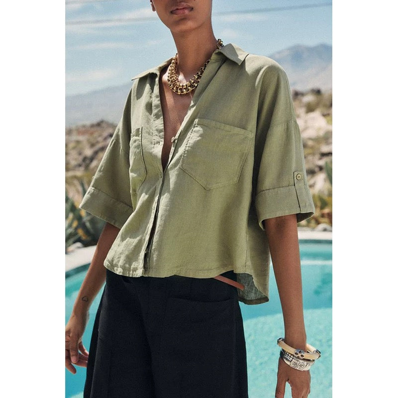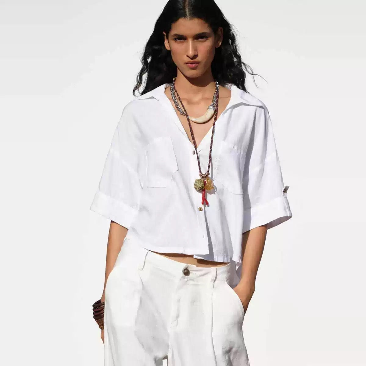 • Design details: Relaxed short-sleeve shirt with an open neckline and soft drape. Designed with a loose, effortless silhouette that creates a laid-back yet styled look. Easy to layer over tops or wear as a statement piece.