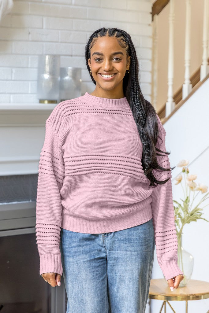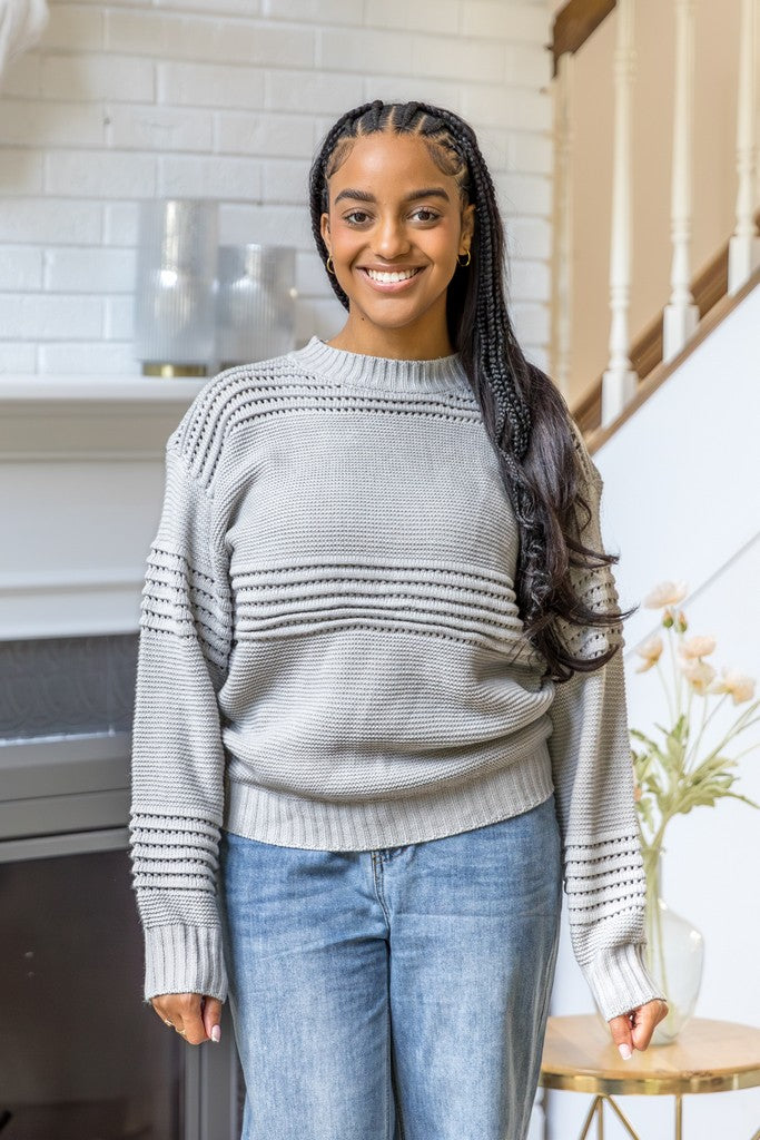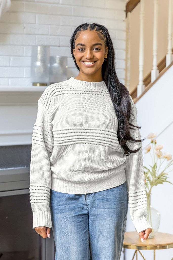 - Design details: Oversized knit sweater with linear pattern .